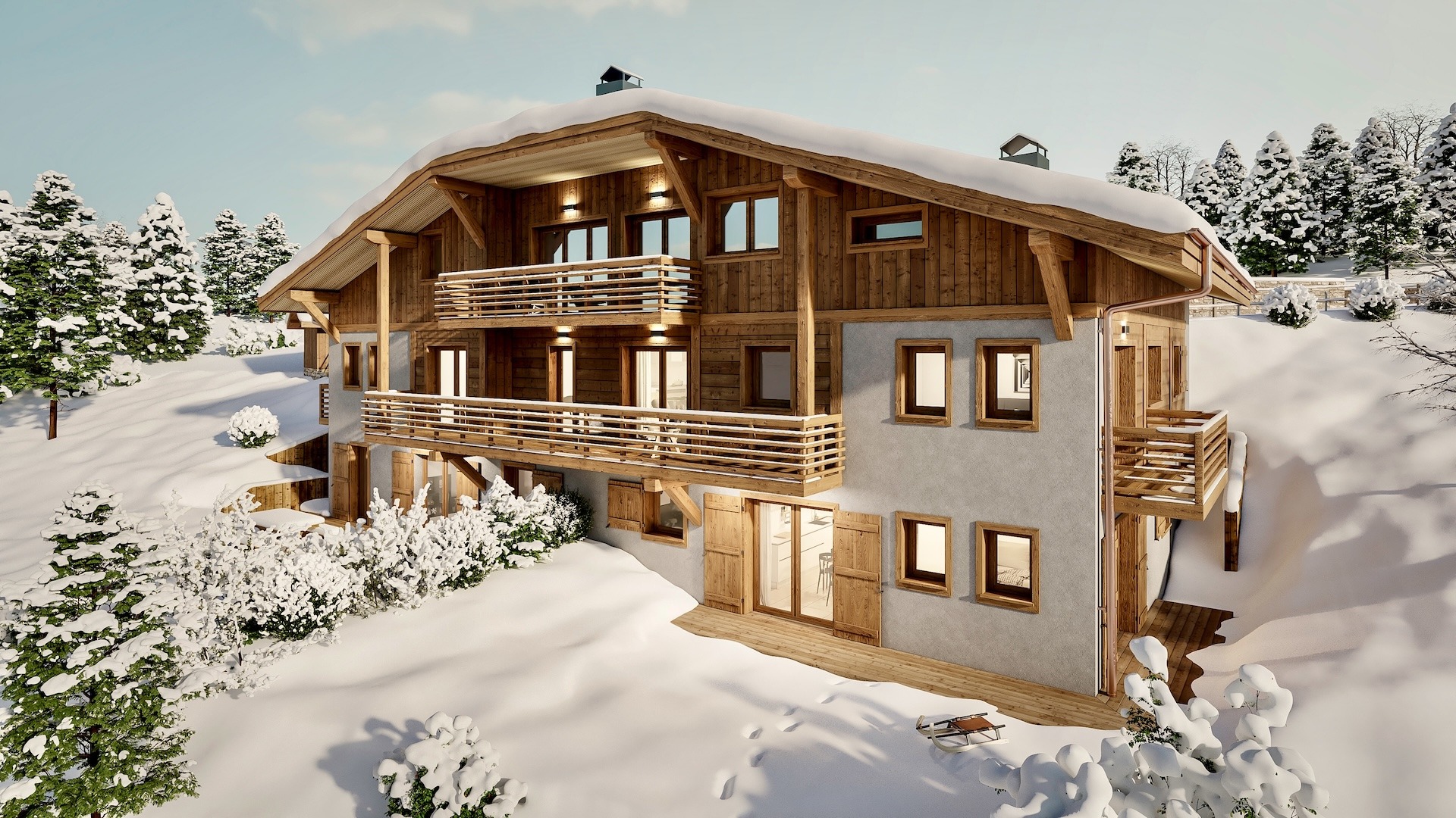 Composée de seulement quatre appartements haut de gamme, cette résidence intimiste offrira à ses propriétaires un cadre de vie rare et privilégié entre sérénité absolue, immersion dans la nature et superbes vues sur le massif du Mont-Blanc.